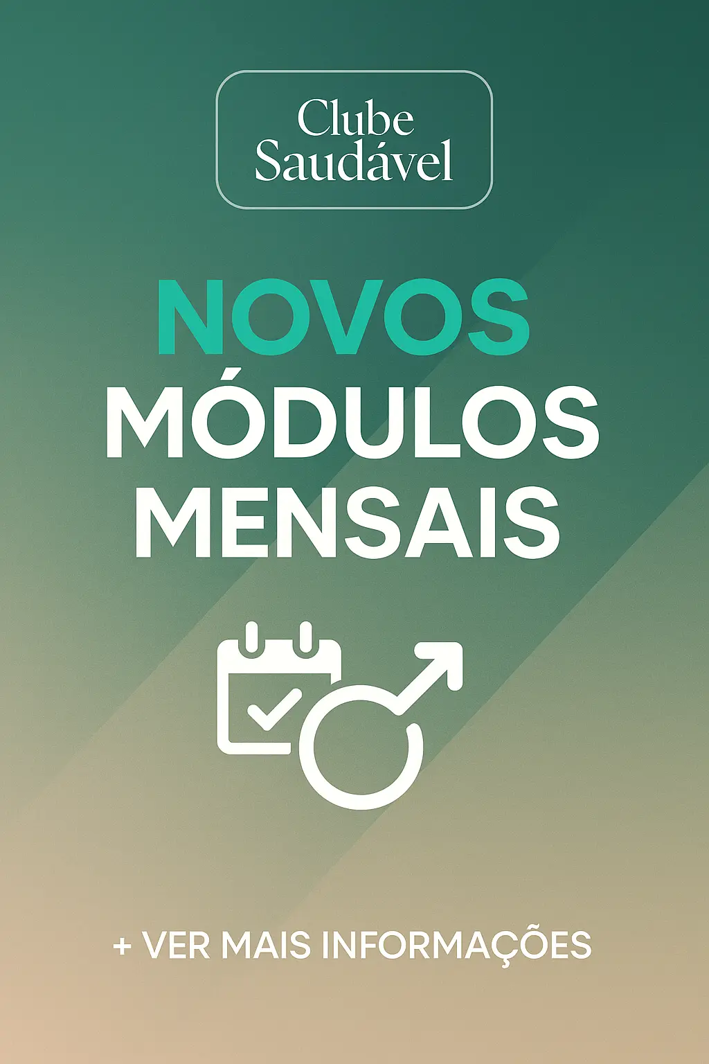 Todos os módulos ficam disponíveis na hora. Você aprende no seu ritmo, participa das aulas ao vivo e aplica com acompanhamento da equipe Clube Saudável.